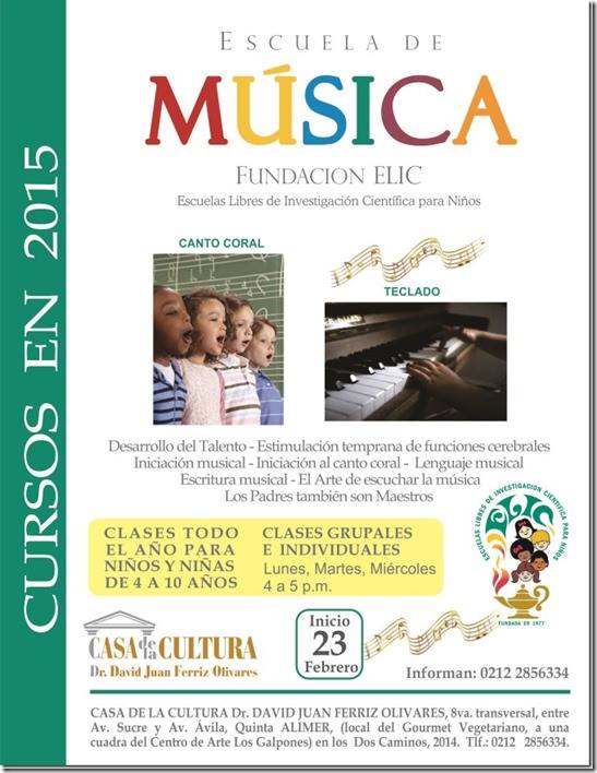 AFICHE curso Musica feb 2015La Fundación E.L.I.C. Sede Caracas comenzó a dictar clases de flauta y cuatro venezolano a cargo del docente Art. Andrés Pérez Palmar.
